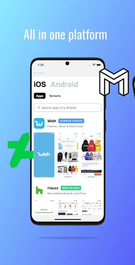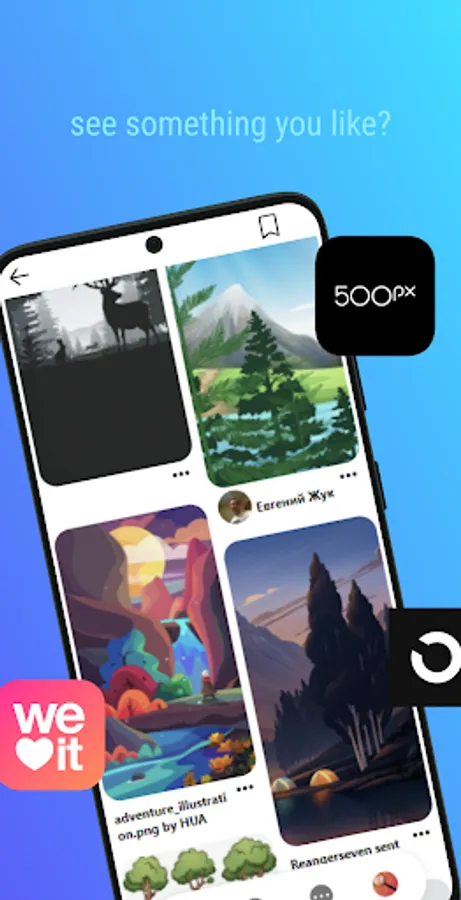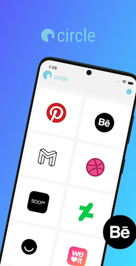 pinterest, behance, dribbble and Mobin are some of the platforms you can access from the app.