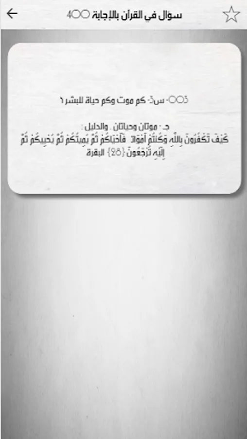 أسئلة القرآن وأجوبتها تطبيق يحتوي على أسئلة القرآن الكريم مع الإجابة مع ذكر الآية وتفسيرها .. تطبيق يحتوي على 400 سؤال من القرآن الكريم
