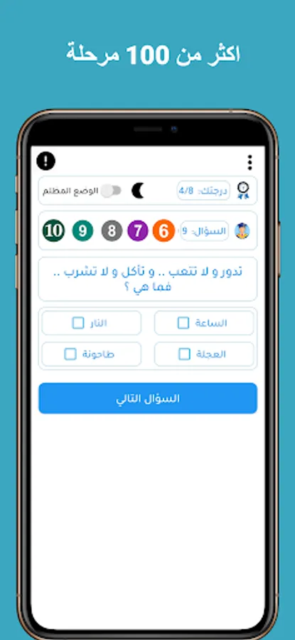 The Questions Game Competition application - a question and answer is an educational knowledge application that includes a difficult question and answer and an easy question and answer. It organizes more than 2000 questions and a variety of answers in several areas, including the application of a question and answer - the questions game several levels. More than 20 levels of question and answer in different areas of religious Geographical, cognitive, mathematical, medical and most of the well-known fields.