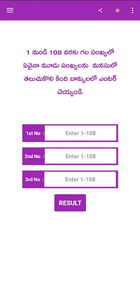 ✡ Then give three digits of numbers from 1 to 108 in the indicated box and click submit.