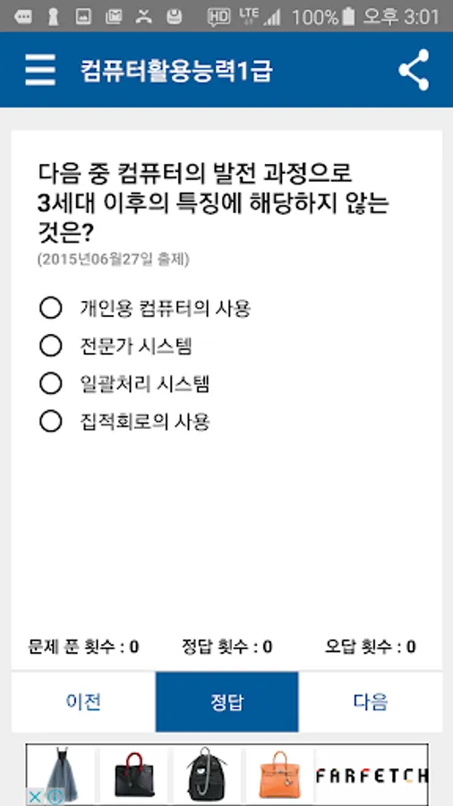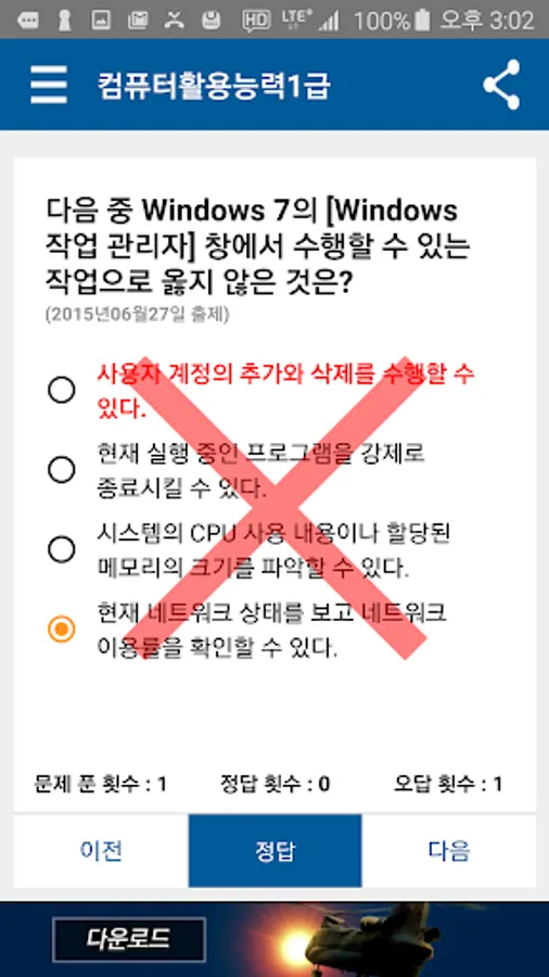 He solved the problem, you can see whether the correct answer / wrong answer. Previously, press the Next button to check your answer going beyond to other issues.
