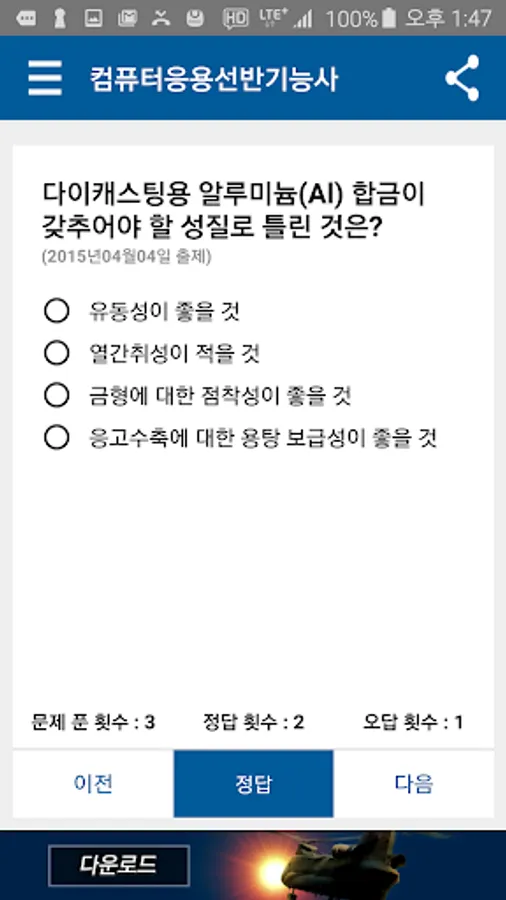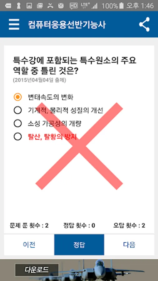 He solved the problem, you can see whether the correct answer / wrong answer. Previously, press the Next button to check your answer going beyond to other issues.