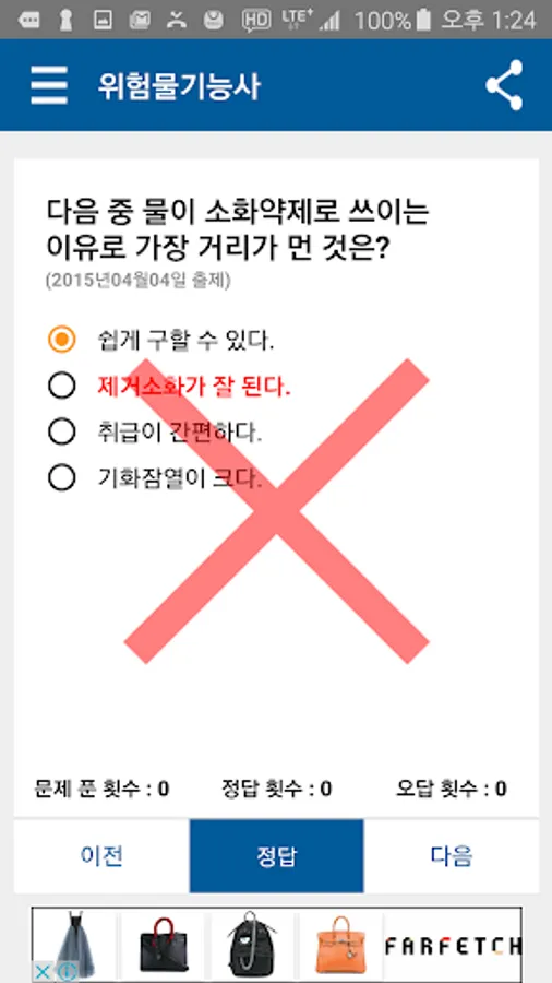 He solved the problem, you can see whether the correct answer / wrong answer. Previously, press the Next button to check your answer going beyond to other issues.