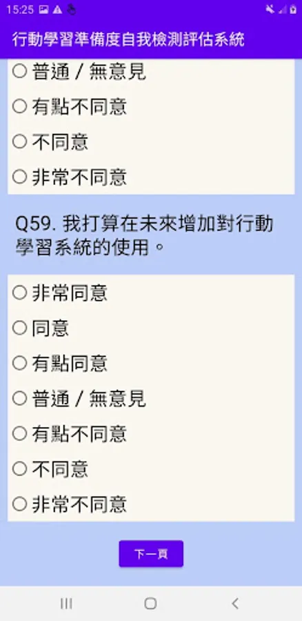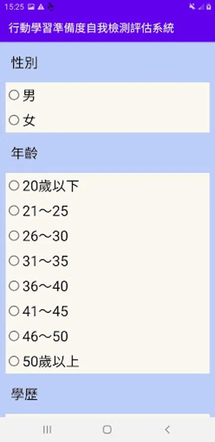 The main purpose of this APP is to verify the "Action Learning Readiness Scale". You are required to provide various views on action learning. This system is only for academic research and will not collect personally identifiable information. There is no need to worry about your personal information being leaked. Please You can answer with confidence.