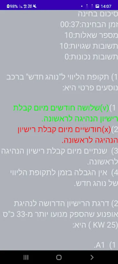 ✔️ Every exam you do is saved in the cloud database, so you can check what you got wrong and what you got right. How long did the exam take you and more.