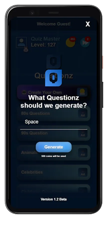 There are 100's of generated trivia categories ready to play but if you can't find what you're looking for let Questionz generate some based on your prompt!