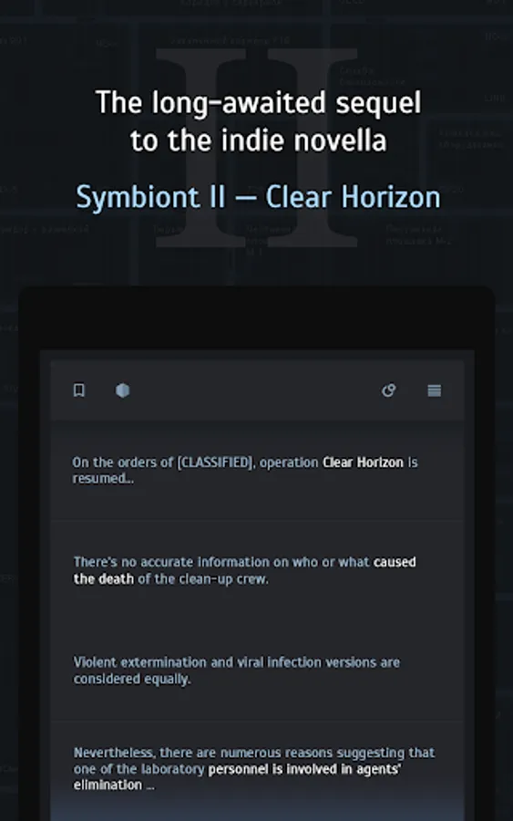 Symbiont 2 is a science fiction text quest, a mix of horror and survival. From now on, you’re on the other side of the conflict. Your role task is to complete the quest mission successfully, untangle the web of riddles and, of course, it would be best to keep the mercenary alive.