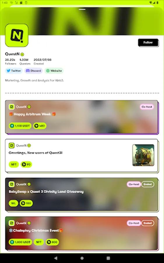 But that's not all - QuestN is all about discovery. Explore new quests, communities, and opportunities every day, and earn exciting prizes on the go.