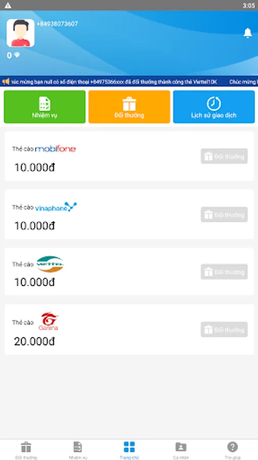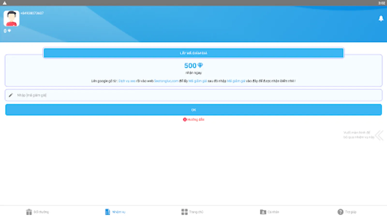 Do the tasks as needed to accumulate diamonds - the task is very simple, you can use diamonds to redeem rewards such as gifts, game cards or phone cards, along with countless another offer.
