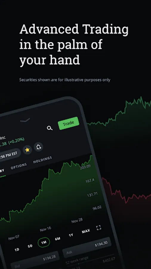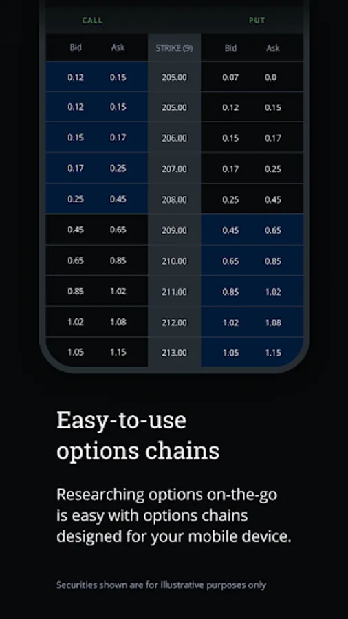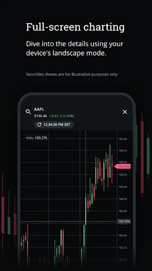- Full-screen charting helps you analyze the performance of a stock, option or ETF, using your mobile device’s landscape mode to help you dive into the details