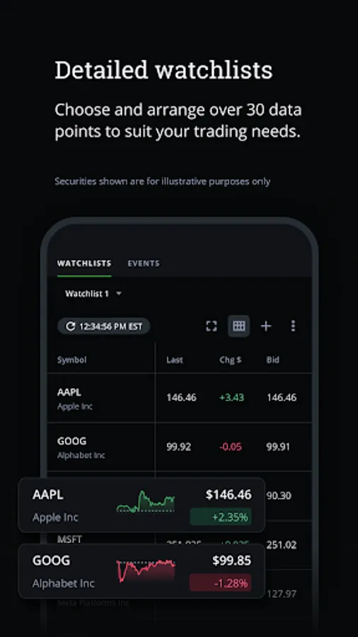 - A fully customizable detail view for your watchlists, positions and orders pages, that allows you to choose and arrange over 30 data points to suit your needs