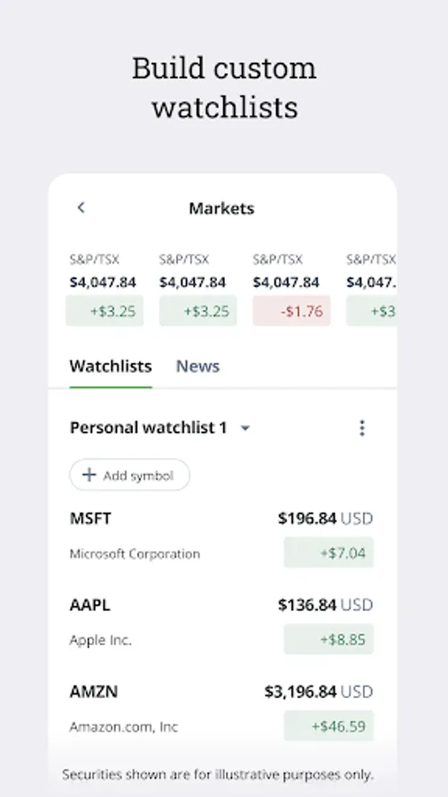 - Easily track the stocks and ETFs you want to keep an eye on with customizable watchlists that sync across devices.