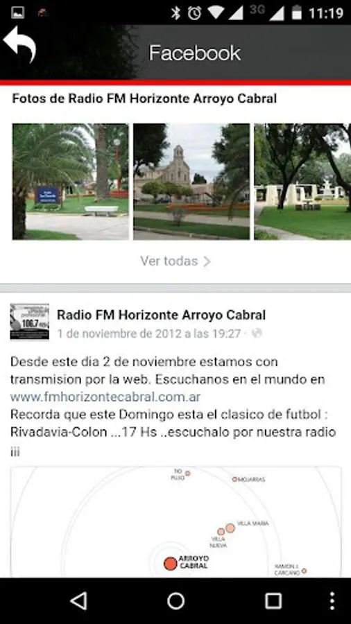 Horizon FM is the first and only existing radio in the town of Arroyo Cabral. It is characterized by a schedule, preferably localist, with general information and sports. Located in the 106.7 dial, has a dynamic, always at the service of the community programming and agile.