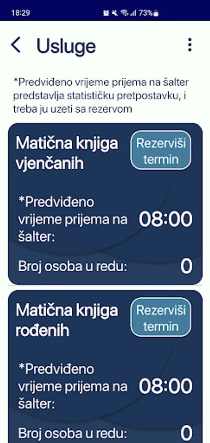 The application allows clients to review availability by service type. Clients are able to reserve a place in the queue and monitor their position in the queue in real time, receiving adequate notifications.