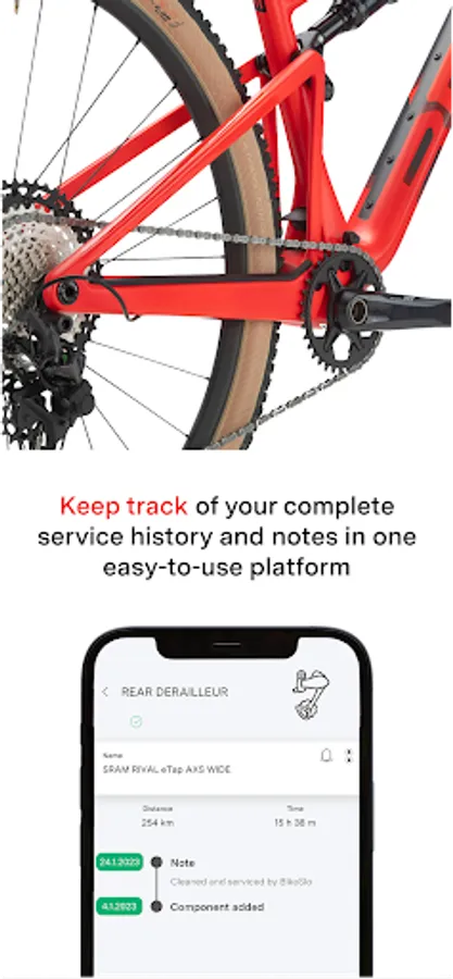 Keep track of your bike’s complete service history as well as additional notes from you or your trusted mechanic in a user-friendly interface. All tracked at the component level but also viewable across the overall bike.