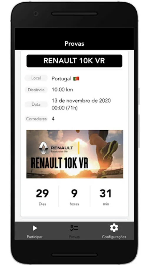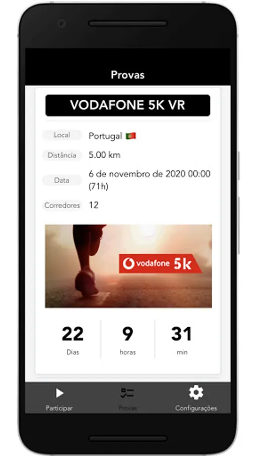 The VRaces MCP app was created by the Marathon Club of Portugal for the virtual races it organizes. This mobile application, available for iPhone and Android, allows virtual races participants the opportunity to register their performance, including the distance and time, and consequently the creation of an official ranking with the times of all participants.