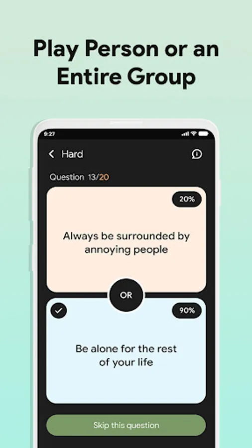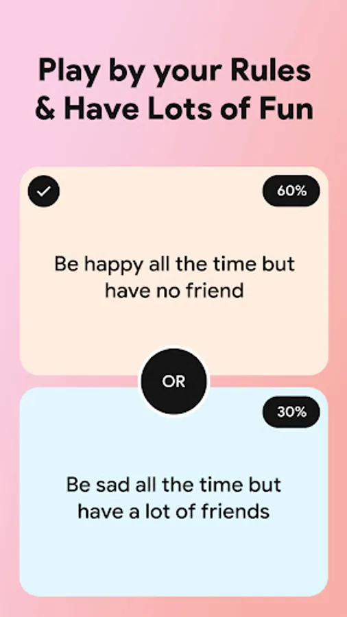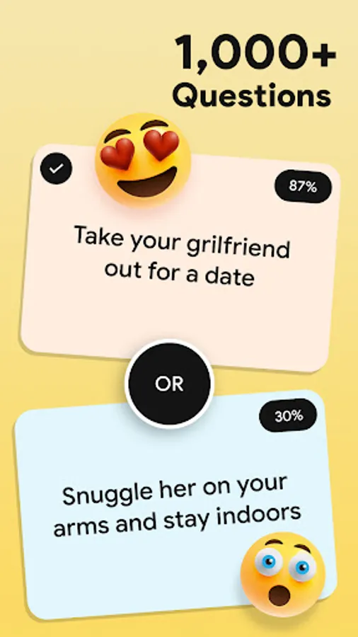 We've made a beautiful game named Would Your Rather Game. It is a great way to get a conversation started in a fun and interesting way. And it’s easy to get into some amazing conversations by just asking “why” after a would you rather question. You’ll get some very interesting answers and probably learn a lot more about the person you are talking to.