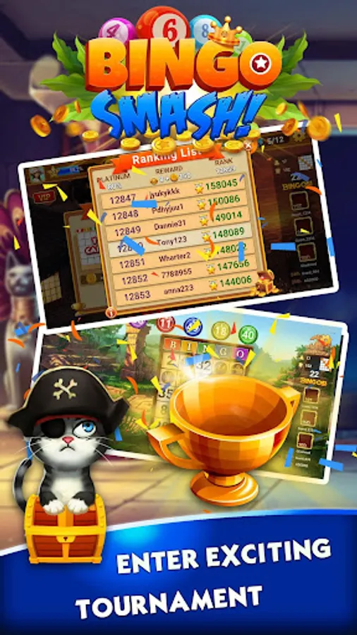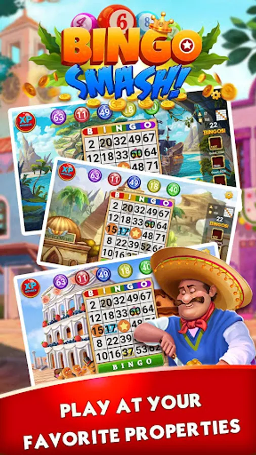 Bingo smash is a FREE bingo game and you can play with 1, 2, 4 or 8 cards. Enjoy your fantastic Bingo Party around the world! Tons of bingo partyland rooms from tropical beach to country ways are waiting for you. Conquer bingo win and bingo showdown, start playing bingo live now! The fun of your bingo holiday is in the air!