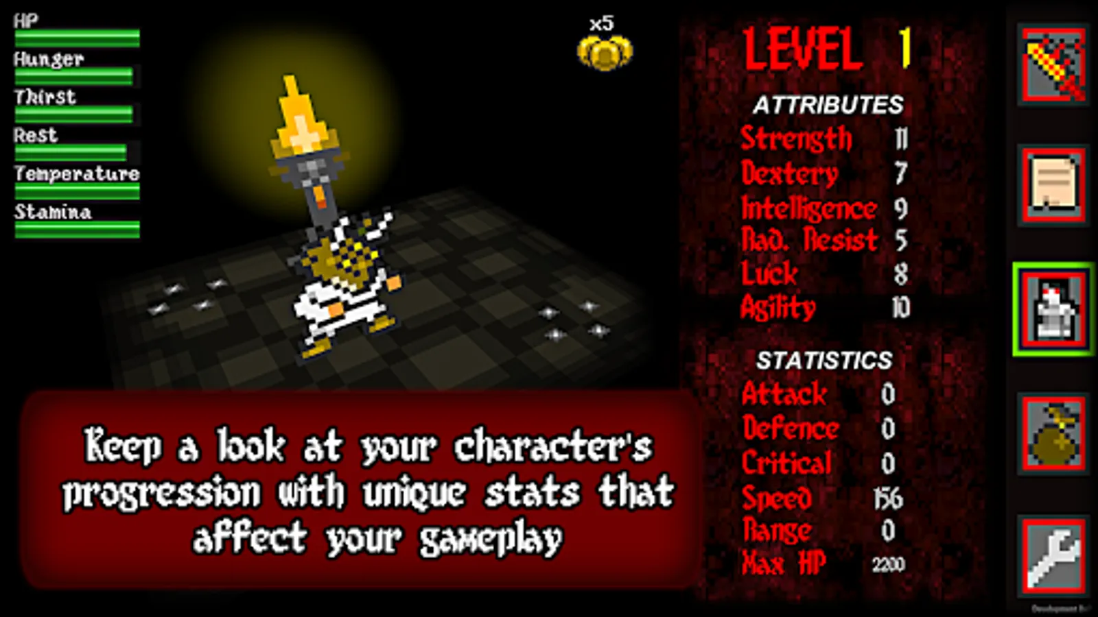 - Level up system, difficulty increased as you progress your character.