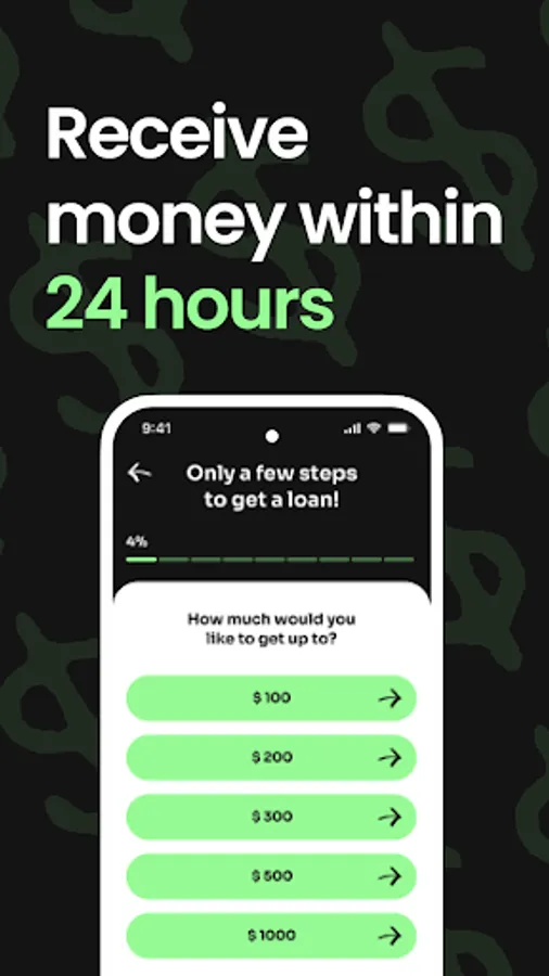 One of the many benefits of our money loan app is that it allows you to get cash without any hassle 24/7. The process of getting a loan via pur app is really simple and fast. Simplify your life and use smartest way to get cash when you need it.