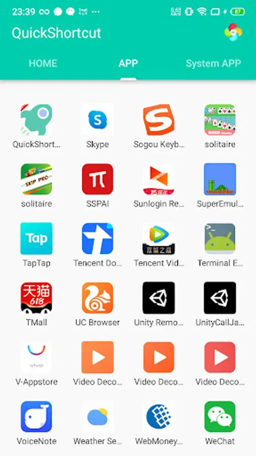 [ You can quick launch any app info installed in your smartphone. This feature is a great tool and useful to developers, because they had to check the app info step by step, from the home page, and then setting and next... maybe 10 seconds later then they get the app info. So it's boring. Now , they just need tap the short cut key in the homepage , then get the app info immediately]