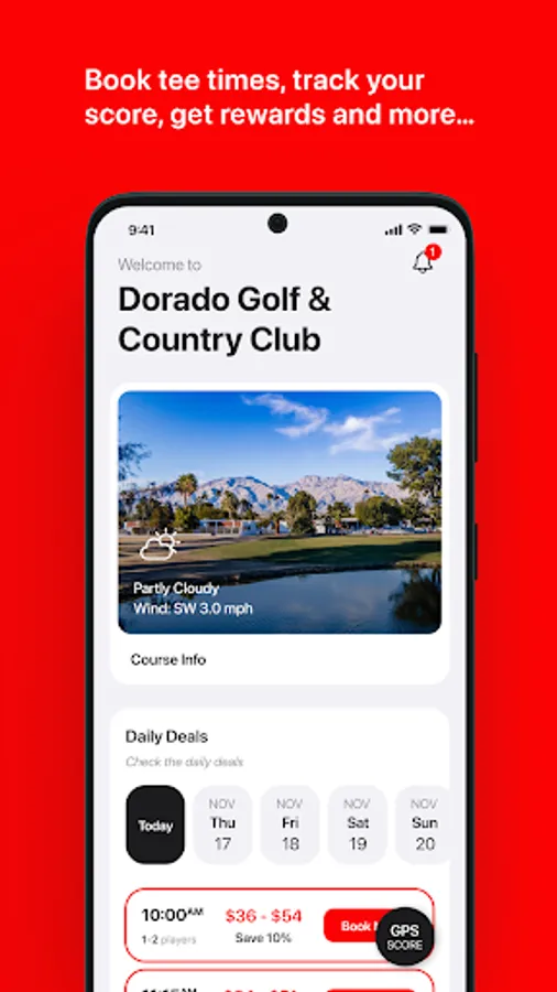 Get the Dorado Golf & Country Club app to conveniently reserve your tee times, use GPS, track your score, and view our course social feed. Booking is fast and easy with just 3-taps. Look up your reservations at any time or view and redeem your rewards or promotion codes.