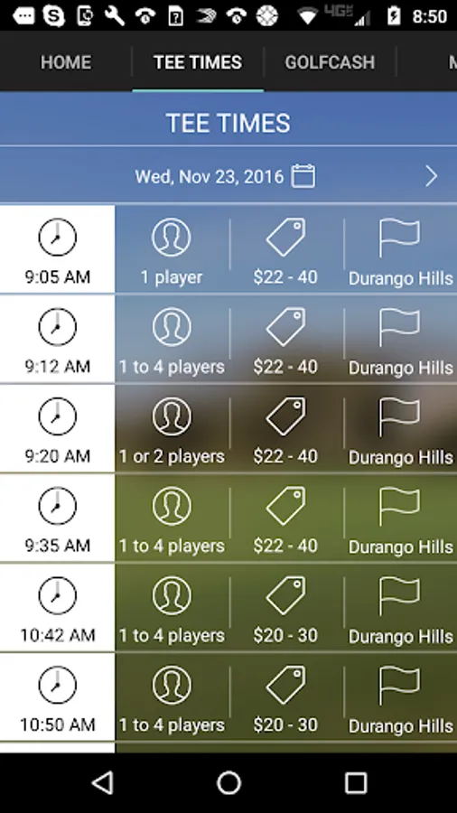 Booking a tee time is as easy as 3-taps and once you've setup your account the app will remember you so its always 3-taps. You can always look up your reservations and cancel reservations if you need to as well. Plus view and redeem your rewards or promotion codes anytime.