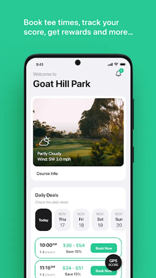 Get the Goat Hill Park app to conveniently reserve your tee times, use GPS, track your score, and view our course social feed. Booking is fast and easy with just 3-taps. Look up your reservations at any time or view and redeem your rewards or promotion codes.
