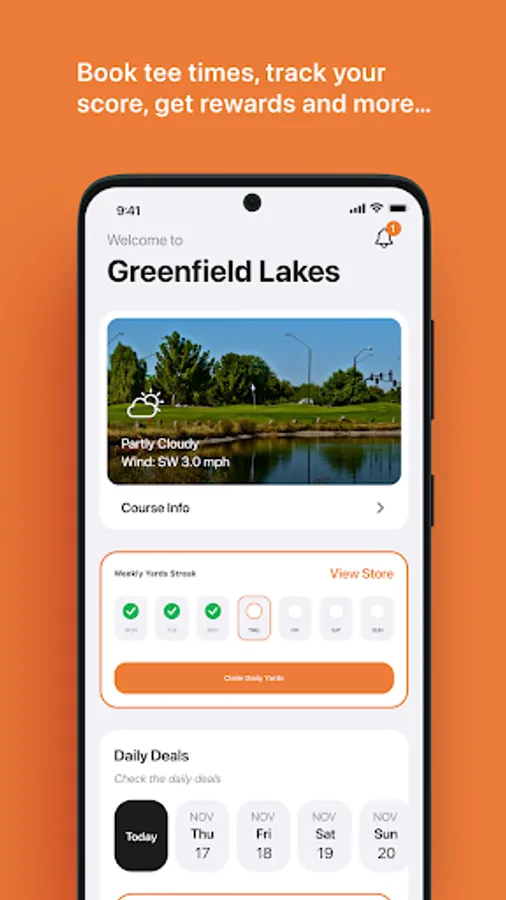 Get the Greenfield Lakes app to conveniently reserve your tee times, use GPS, track your score, and view our course social feed. Booking is fast and easy with just 3-taps. Look up your reservations at any time or view and redeem your rewards or promotion codes.