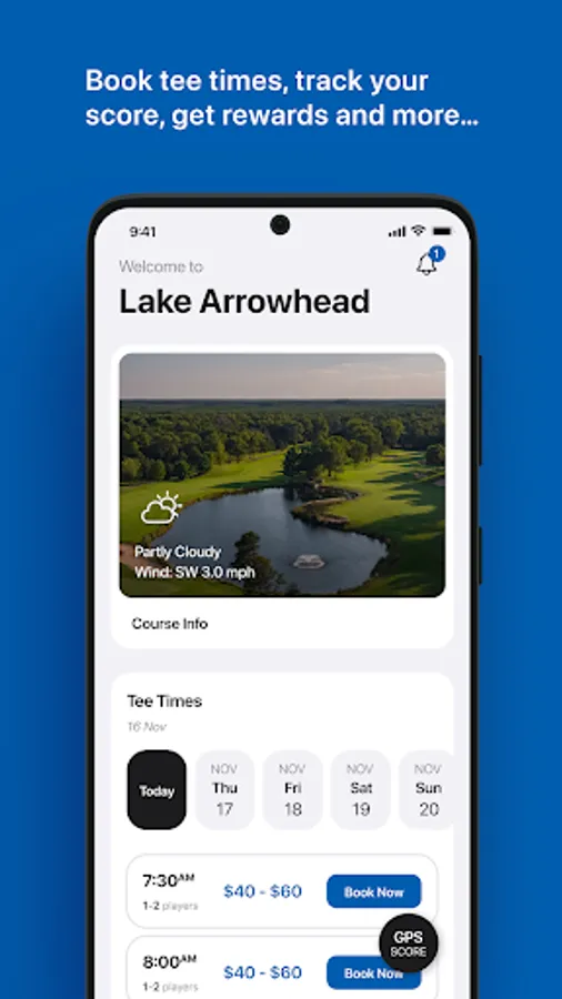 Get the Lake Arrowhead app to conveniently reserve your tee times, use GPS, track your score, and view our course social feed. Booking is fast and easy with just 3-taps. Look up your reservations at any time or view and redeem your rewards or promotion codes.