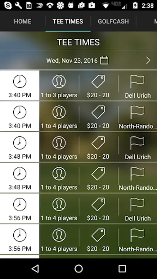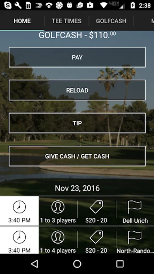 Booking a tee time is as easy as 3-taps and once you've setup your account the app will remember you so its always 3-taps. You can always look up your reservations and cancel reservations if you need to as well. Plus view and redeem your rewards or promotion codes anytime.