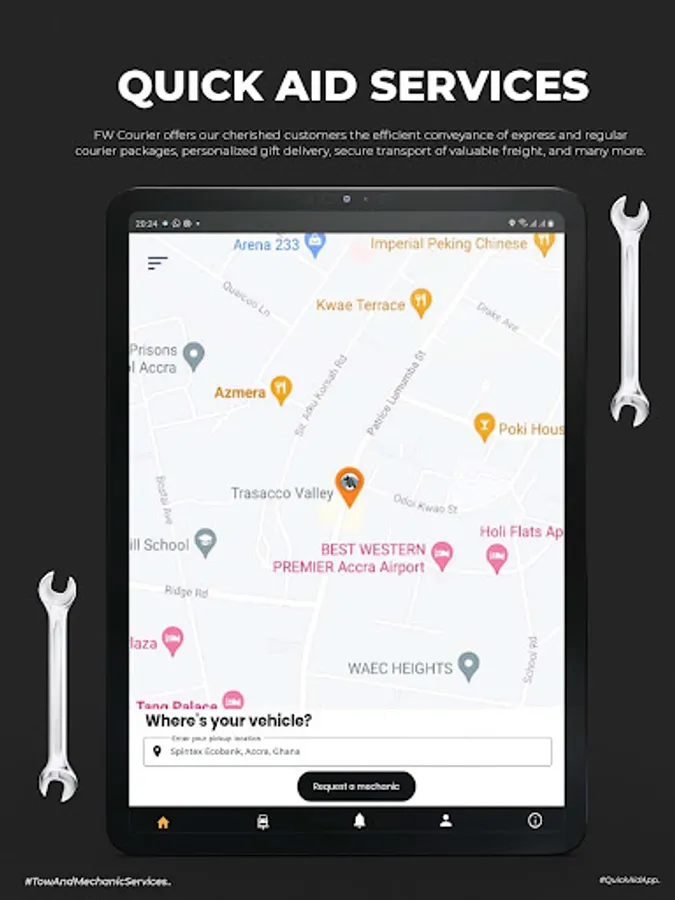 QuickAid is an app that helps you connect with quality towing services with just a few clicks. With the help of the app, you can now schedule towing requests, monitor and manage your trip history and upcoming trip schedule, track your automobile in real time during the course of its towing journey, and get in touch with customer service, all through the same, user-friendly interface.