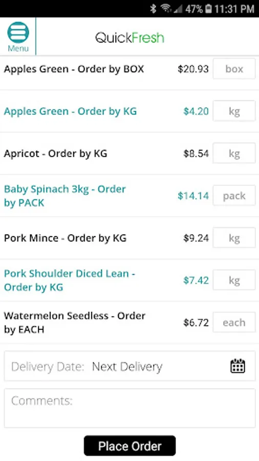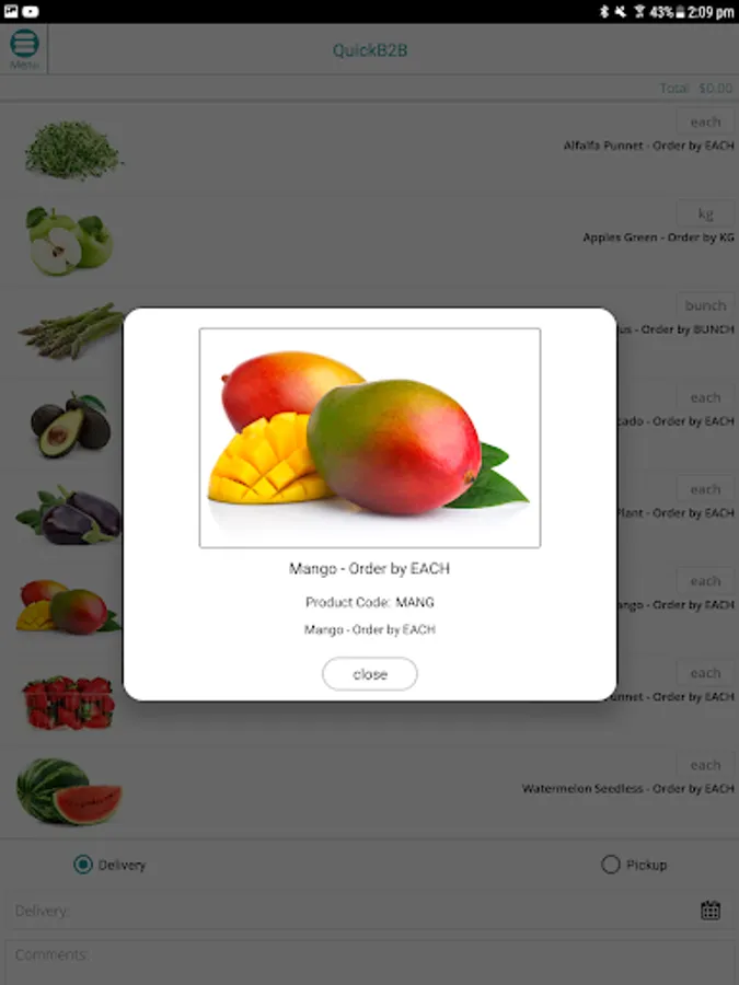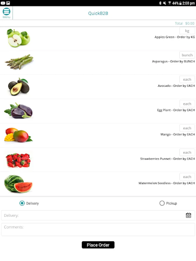 The QuickFresh app offers fresh produce from a variety of wholesale suppliers.