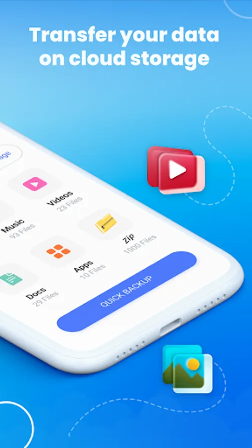 Photo Storage of this Cloud Storage will secure your old memories by backing up your Photos. Cloud Storage and Data recovery will quickly move your data to other mobile phones. The Quick Share feature will easily save your Data on Cloud Storage, so you can easily restore Data from the Cloud Storage.