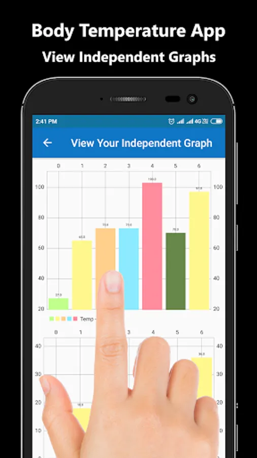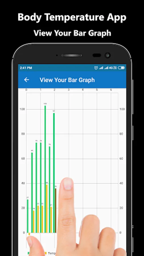 You can check the temperature ranges of your body on graph based on saved temperature readings. You can access your saved temperature records at any time. Body Temperature App provides the user with options to store data and later view history and user can view data in the form of charts.