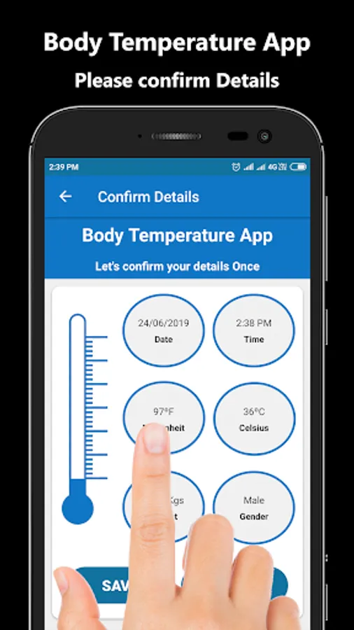 Body Temperature App is like a thermometer which indicates normal, high or low temperature based on temperature values you enter. Body Temperature App is used to save your body temperature values/readings measured by using temperature checker devices.