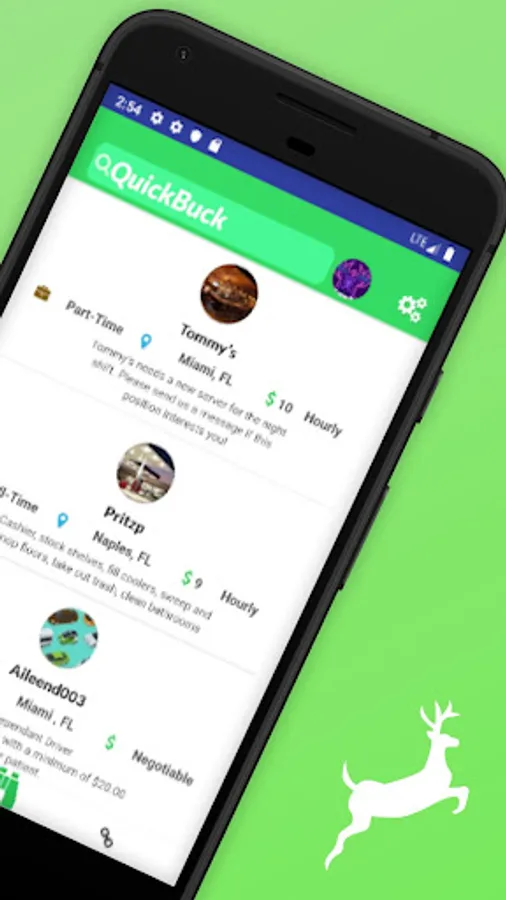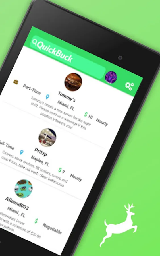 QuickBuck is built for employers and jobs seekers to connect independently. For employers, QuickBuck provides the tools that facilitate and simplify the hiring process by granting access to a community of potential candidates. As a job seeker, the QuickBuck app enables you to search through a stream of job opportunities near you, all at the reach of your finger tips.