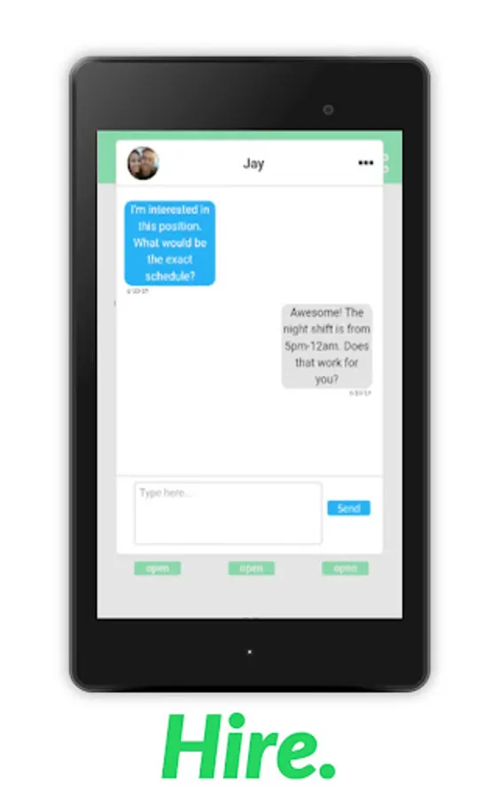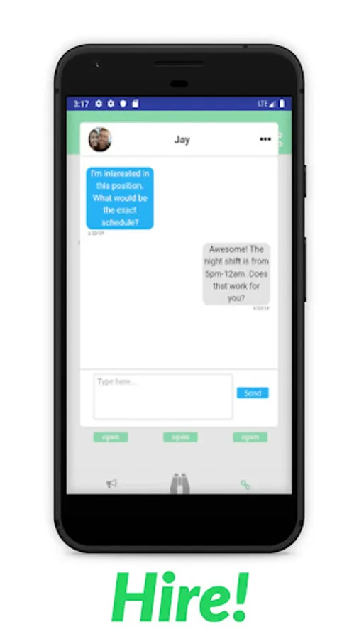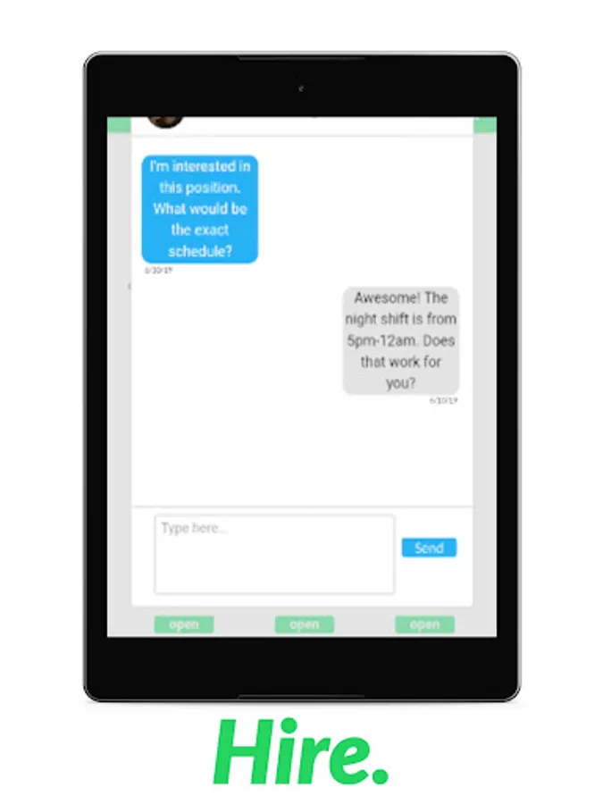 This is all done independently and directly in between users. We believe that hiring is an intimate decision, which algorithms shouldn't partake in. Businesses should have access to a simple method that allows them to review candidates as well as get to know them before making any decision about interviews.