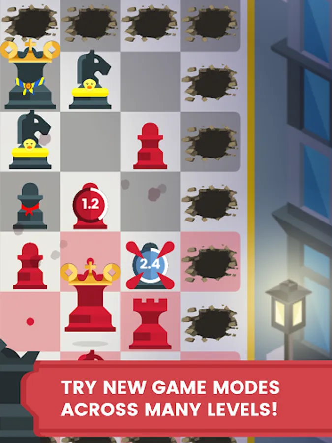 Challenge yourself in a game that lets you move all the pieces at the same time. Fight online PVP battles in real time with other players, or solve hundreds of levels in adventure mode. Pieces change on each game board and can be upgraded. Fast like checkers, intense like chess. Play the ultimate board to action game conversion. Become the ultimate king or queen and join the Chezz revolution today!