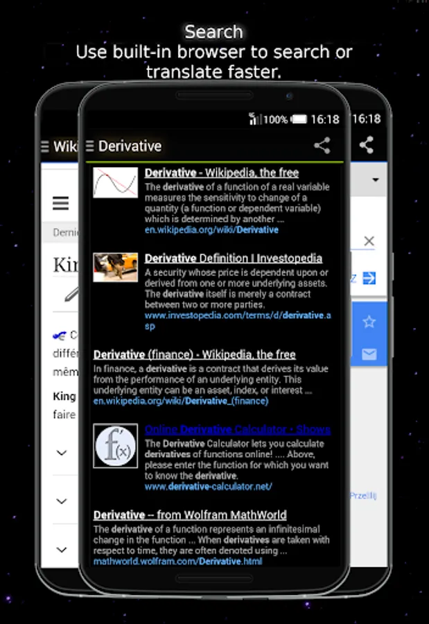 Use built-in browser to search internet, enter Wikipedia or translate words on the go from the app. Don't forget to enable internet connection!