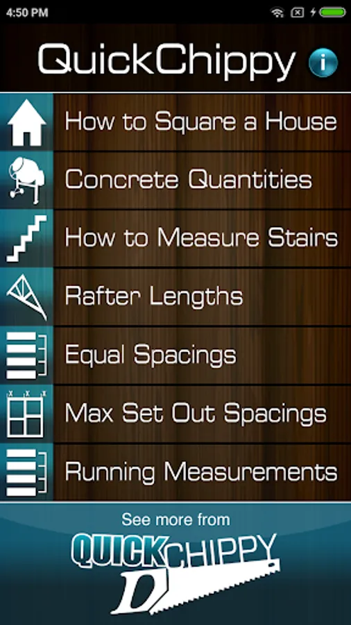 Quick Chippy is a collection of calculators for Chippy’s (and the home handyman that doesn't mind 'having a crack!')