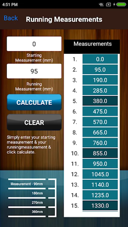 • have running measurements at your finger tips. Simply enter your measurement and hit CALCULATE