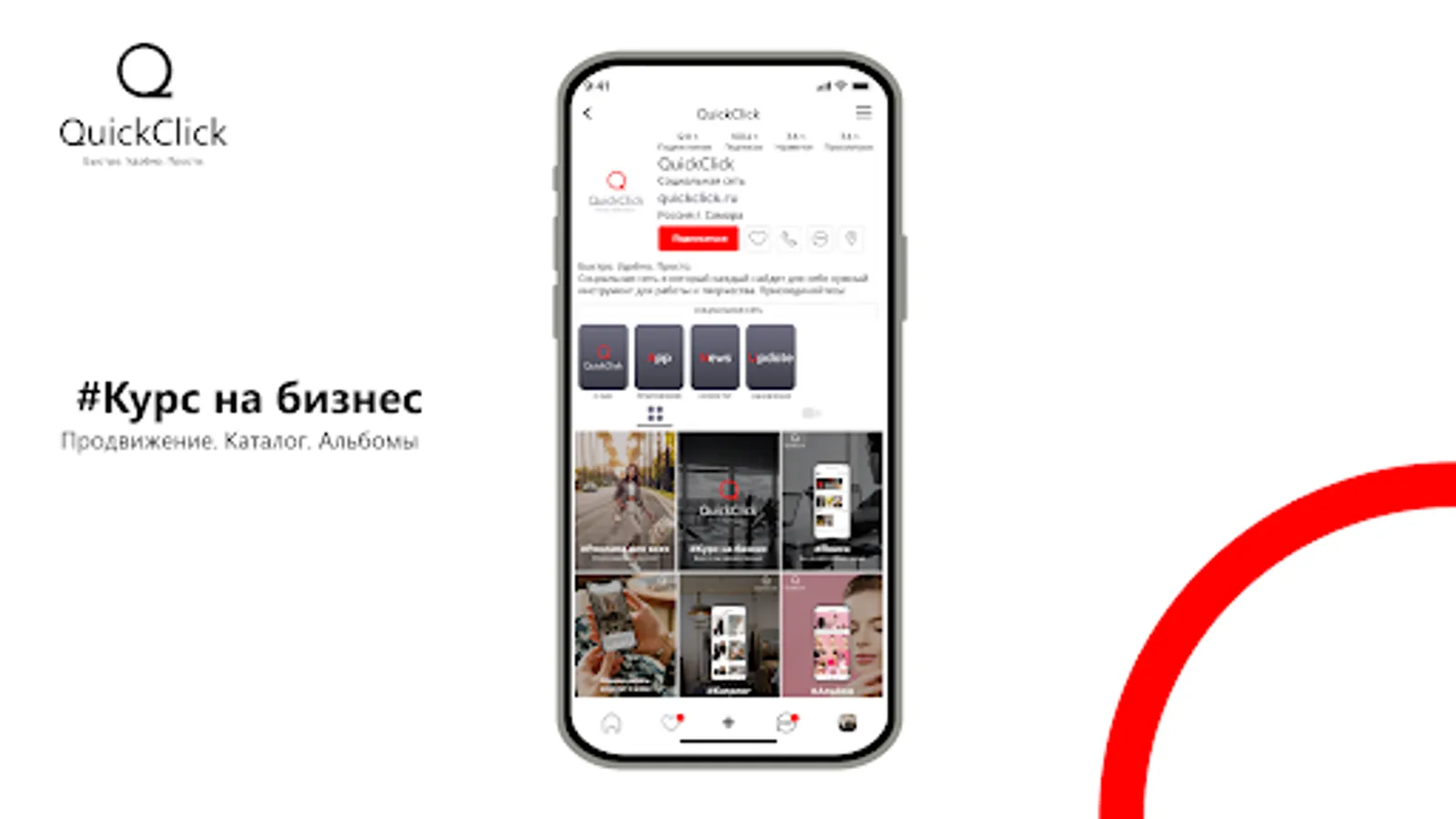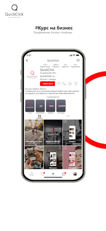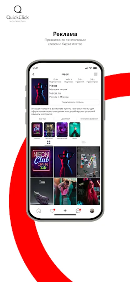 Quick Click is a modern social network in which users can conveniently and simply post and view content, use the catalog functions to sell or buy goods. In QuickClick, everyone will find the right tool for the job. The platform offers an advanced promotion system through the search string and key queries in the form of hashtags. In the near future, an active advertising account will appear on the platform, which will allow you to fine-tune your promotion. In order for business users to get the maximum information and be able to analyze the effectiveness, QuickClick implements detailed account statistics. On the platform, users will find all the functionality they are used to: subscriptions, likes, sending messages, stories, albums, maintaining their account and feeds.