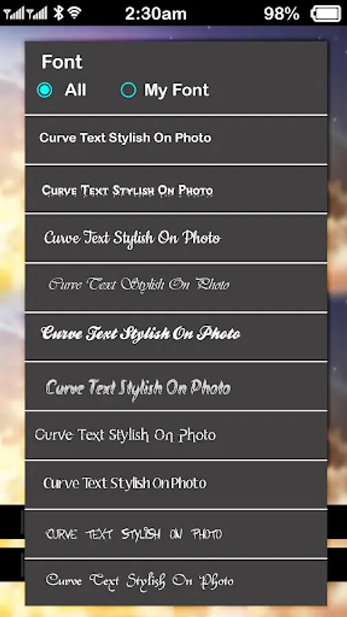 Now your photos can have a thousand words with Curve Text crazy fonts to decorate your photos with words.