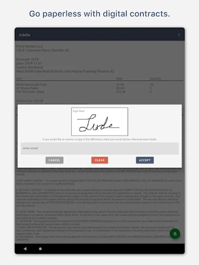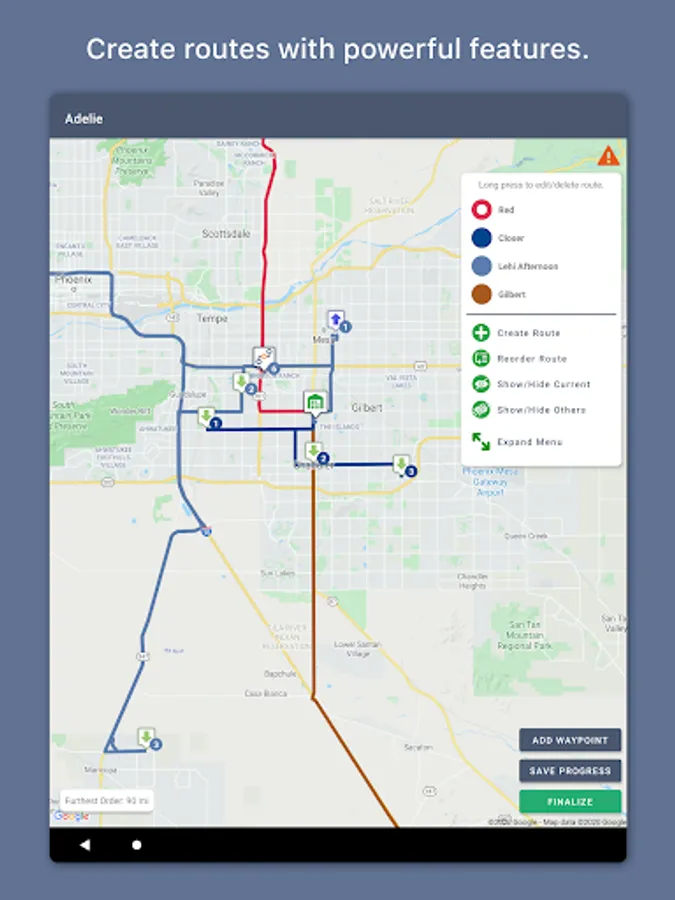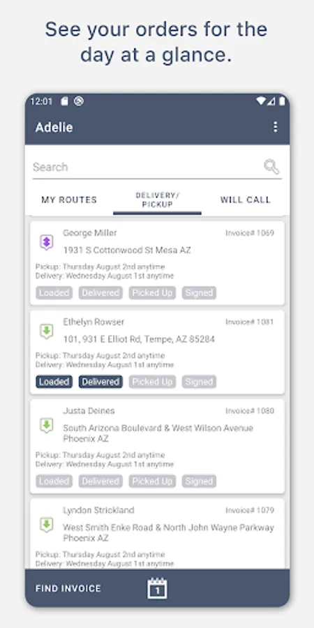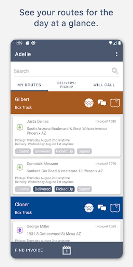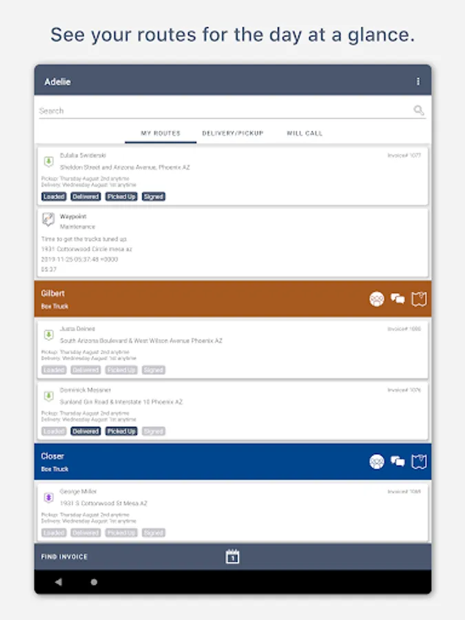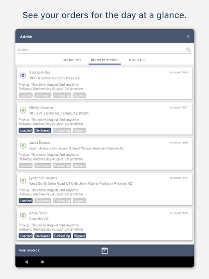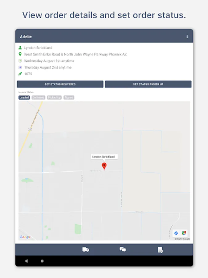The Adelie Logistics Mobile App is a companion to the Adelie Logistics Inventory Tracker software. With the app, you can create routes, view your rental orders, update the status of a delivery, pick up, or will call order, view items for loading trucks for deliveries and generate digital contracts for customers to sign when accepting rental items.