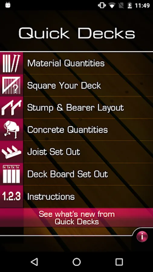 Designed by the team from the QUICK CHIPPY app, to take the annoying maths out of your deck building project, Quick decks includes: