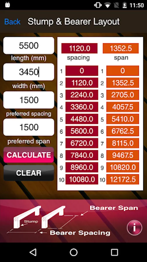 • Set out calculators from the bearers through to the decking