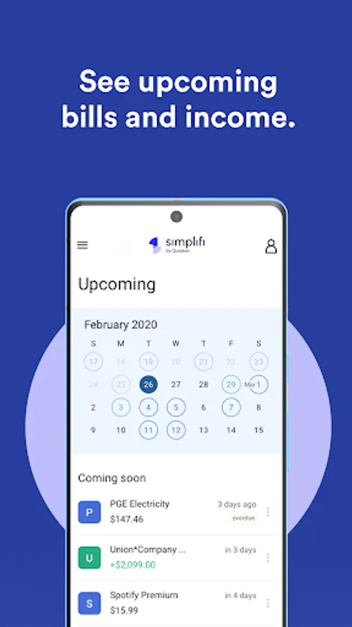– Get alerts on upcoming bills to ensure there's always money to cover expenses
