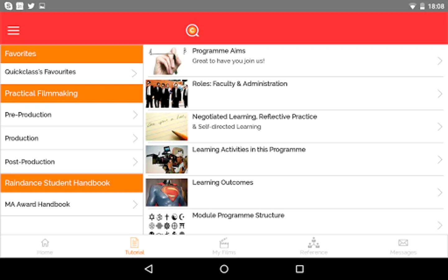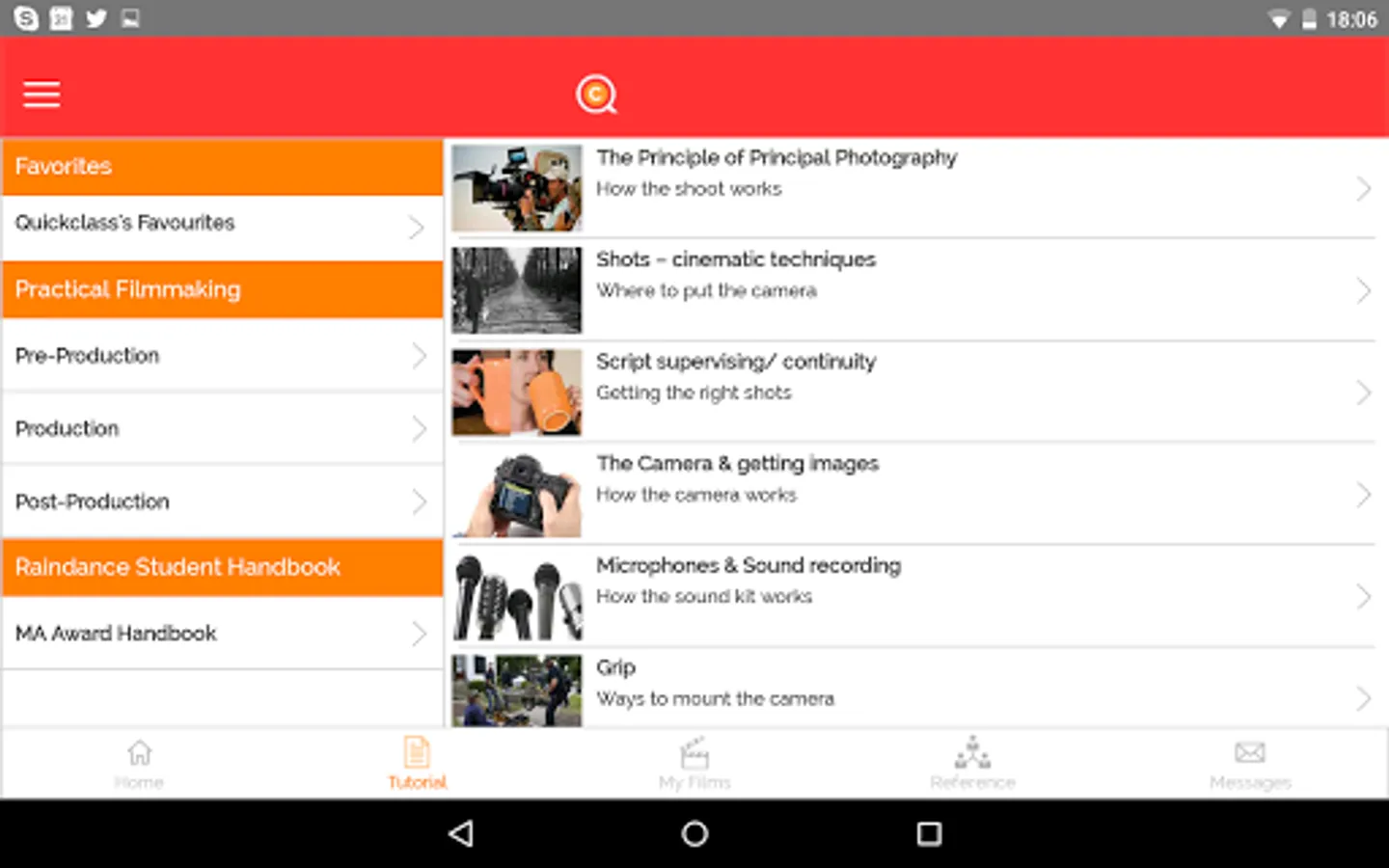 This App was created to enhance the courses for both students and course tutors. The App contains necessary reference materials, filmmaking tutorials, exercises and schedules for each group. Students’ own films are submitted and shared through an interface that makes focusing on the content and purpose of the courses effortless.