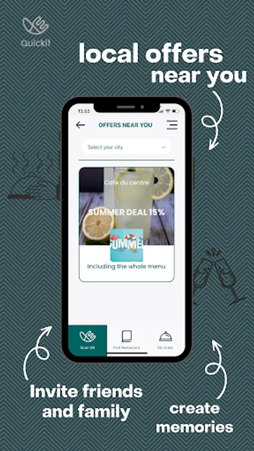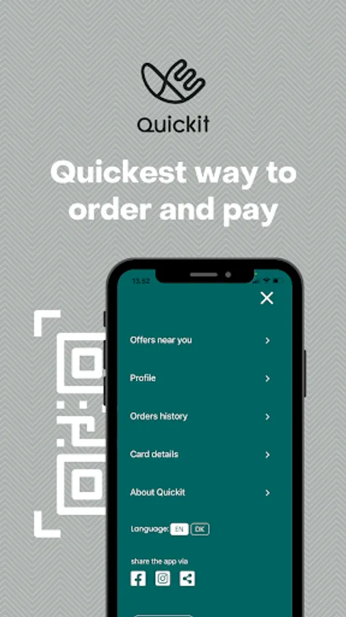Quickit is your digital menucard. Quickit allows you to order and pay directly from your smartphone when dining in at restaurants, cafe's and other serving places. With Quickit you'll have the service by your hand at all times during your visit. Ordering with Quickit you'll minimize wasted time waiting for service and you'll avoid stressed situation during busy hours. Furthermore you'll keep the moments uninterrupted.